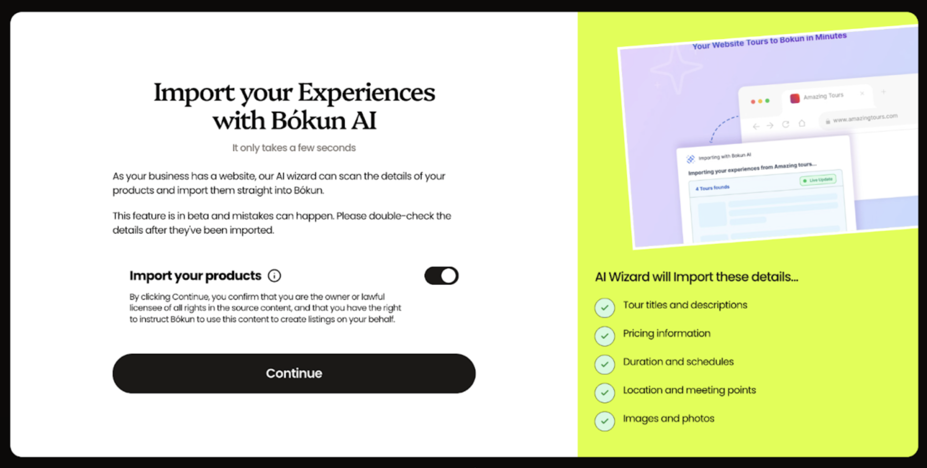Joining a new booking system used to mean weeks of manual data entry. Not anymore. AI Product Importer makes onboarding to Bókun smooth and hassle-free.