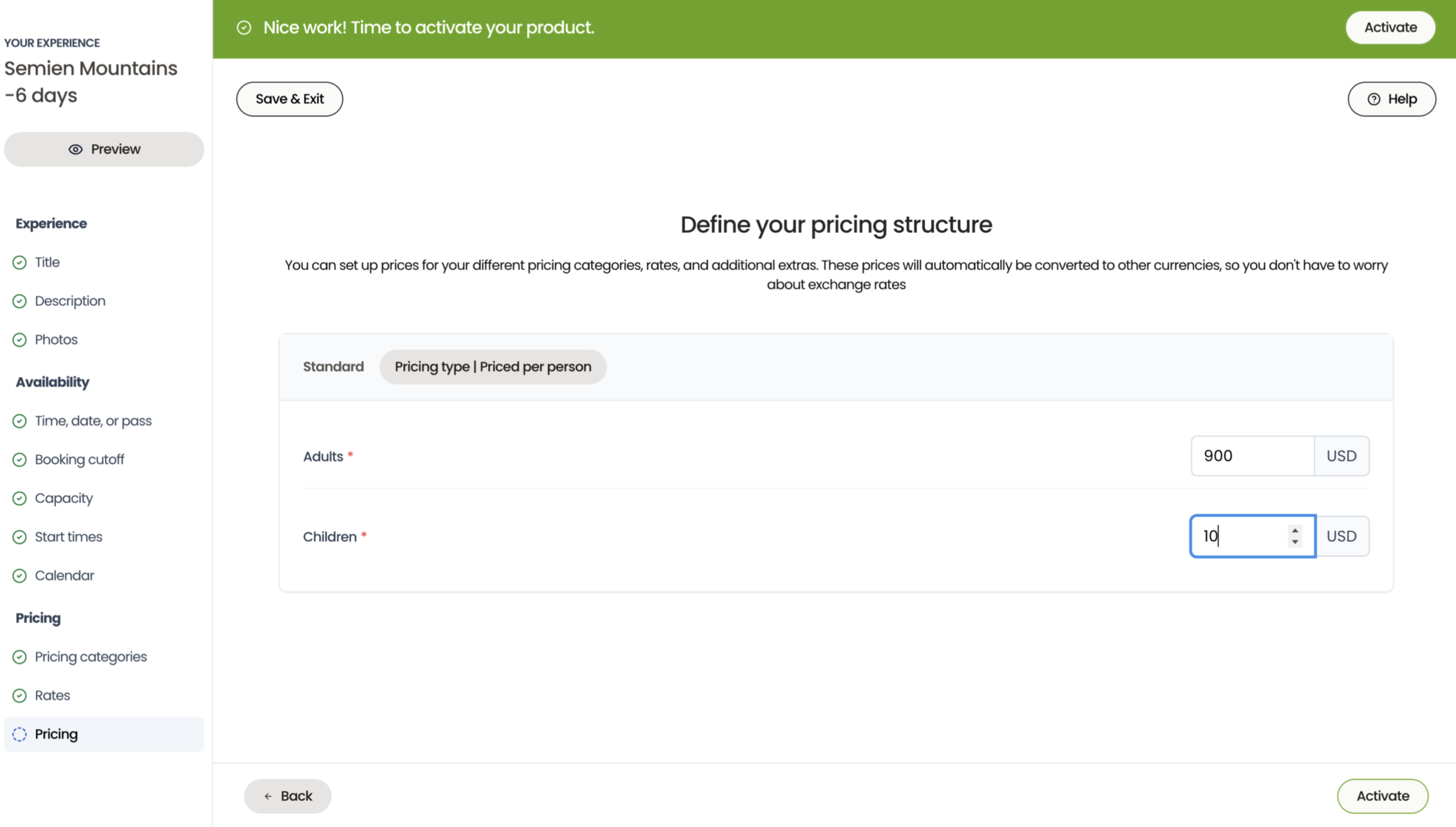 Activate your first experience and start taking bookings